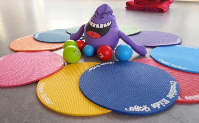 - diverse houdingen, trainen met bal, hoepels, gewichtjes